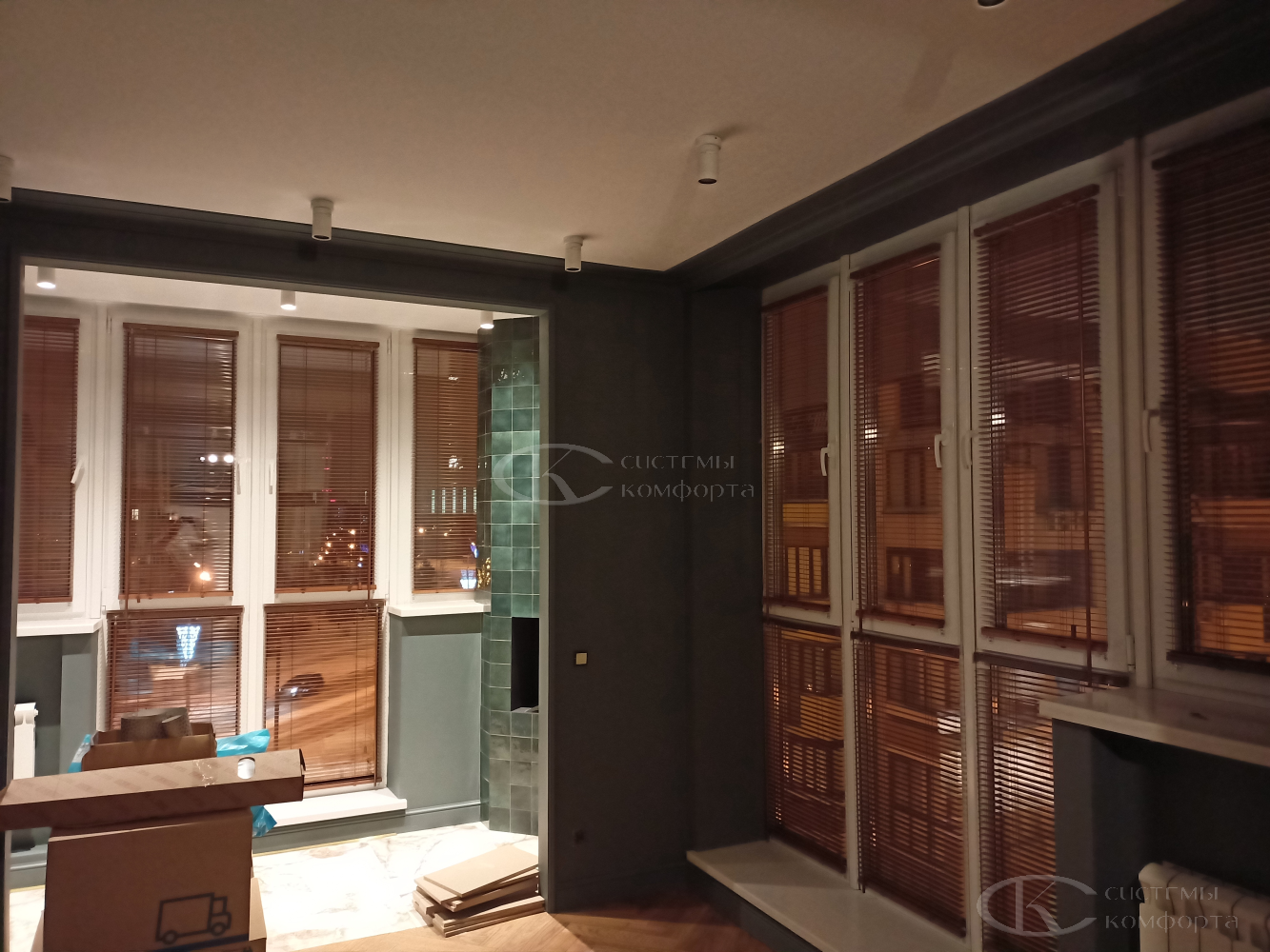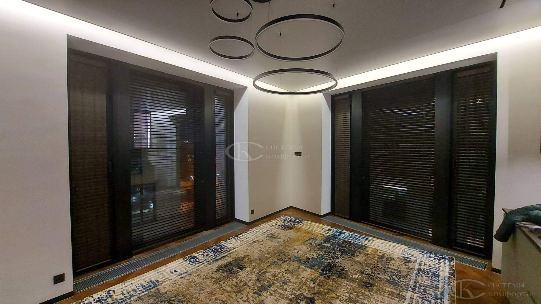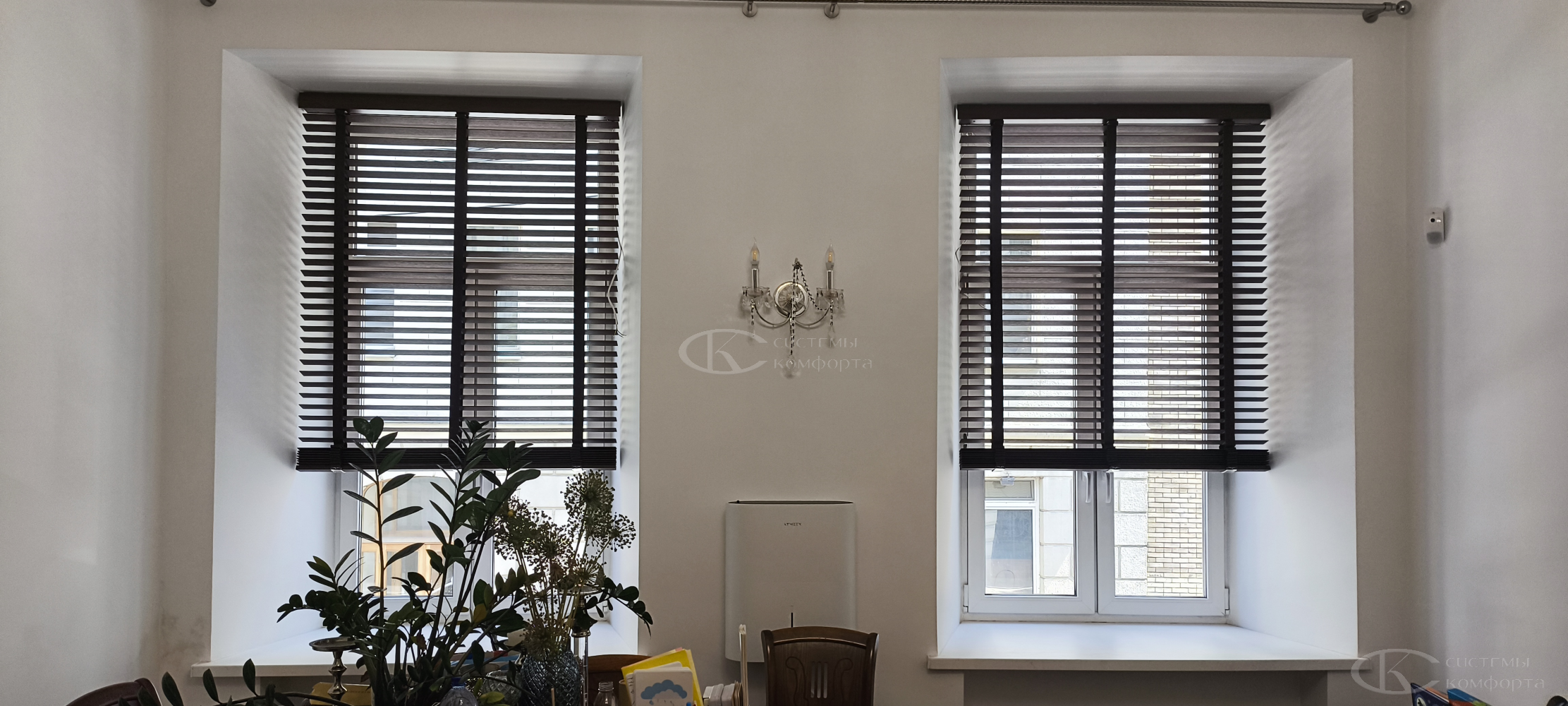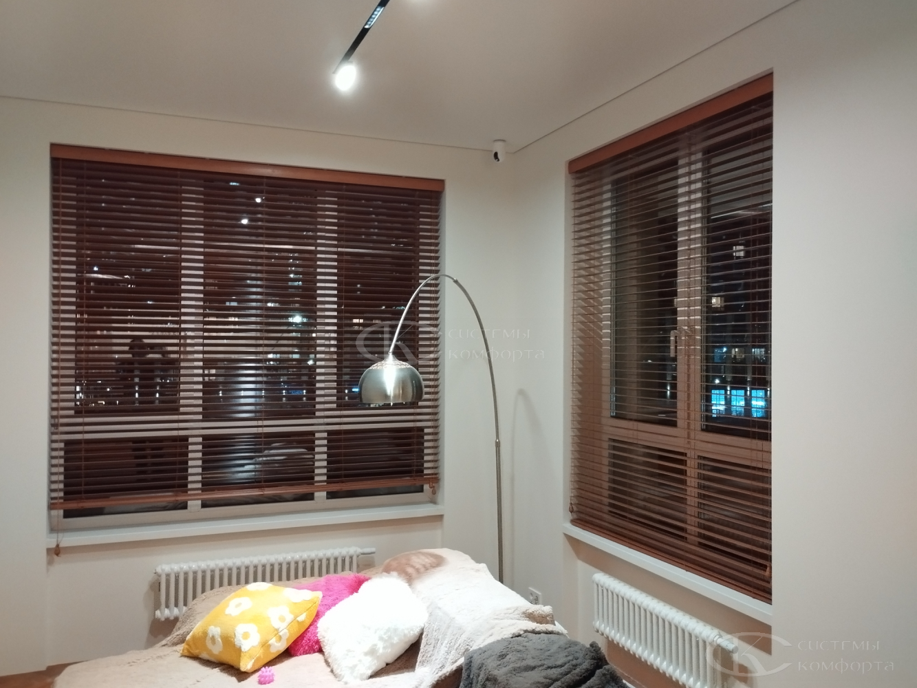 - Гостиная/кабинет: эстетика, стиль, управление светом для комфортной работы и отдыха. Деревянные горизонтальные, вертикальные тканевые, римские шторы, плиссе.
