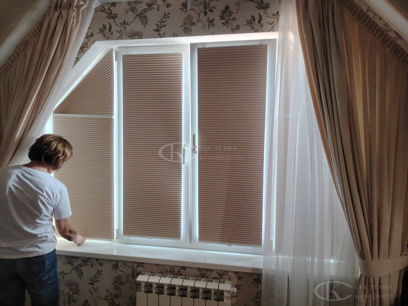 Помимо классических жалюзи и рулонных штор, существуют изысканные и функциональные решения, способные стать настоящей изюминкой вашего интерьера. Например, плиссе, или так называемые мягкие жалюзи. Это цельное тканевое полотно, собранное в изящную гармошку. Их ключевое преимущество – невероятная гибкость в установке. Они идеально подходят для окон сложной, нестандартной формы: арочных, треугольных, круглых, трапециевидных, где другие системы бессильны. Плиссе создают мягкий, рассеянный свет и выглядят очень современно.