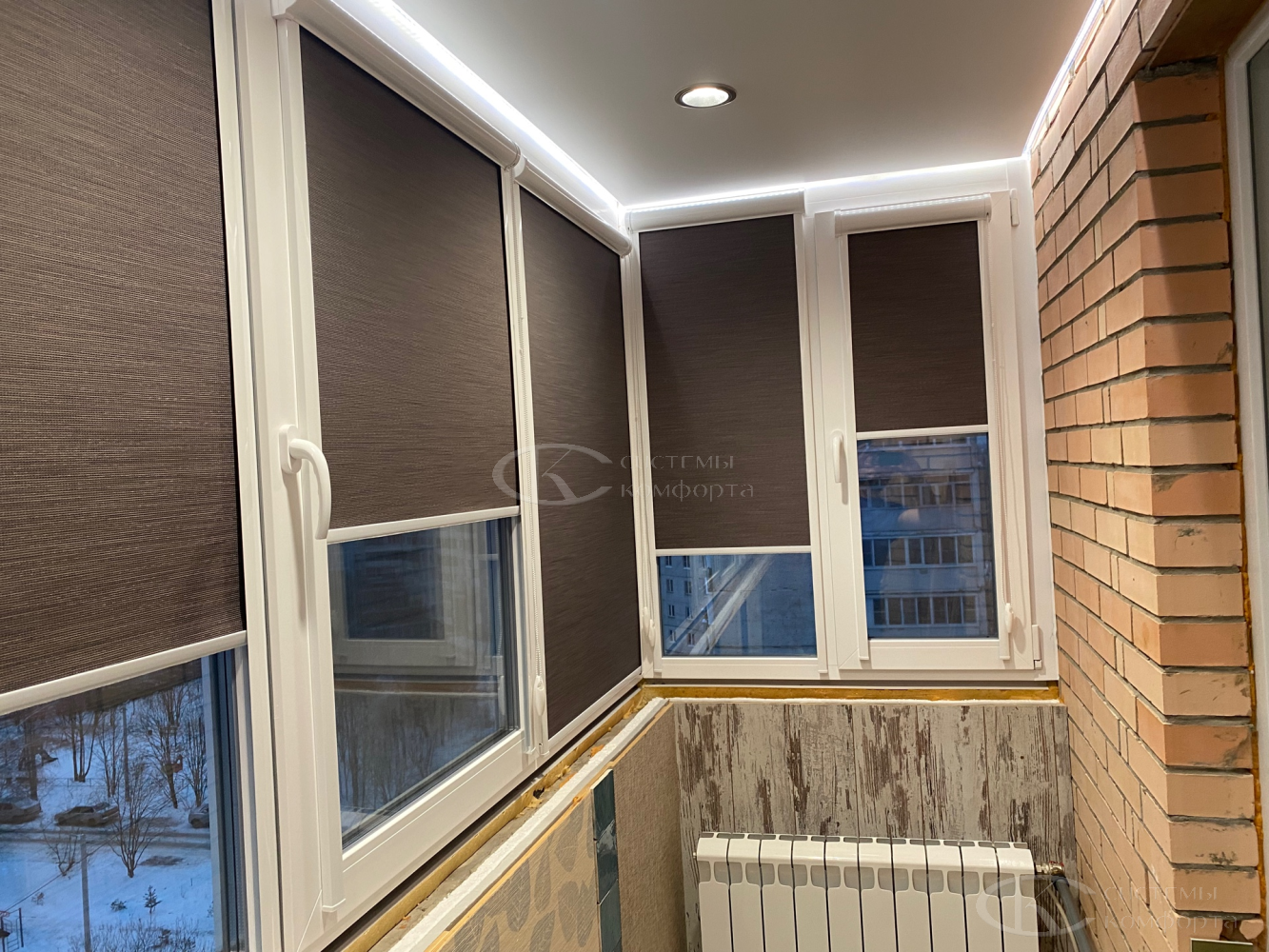 - Балкон/лоджия: защита от солнца и любопытных взглядов. Горизонтальные (алюминиевые, ПВХ) или рулонные.